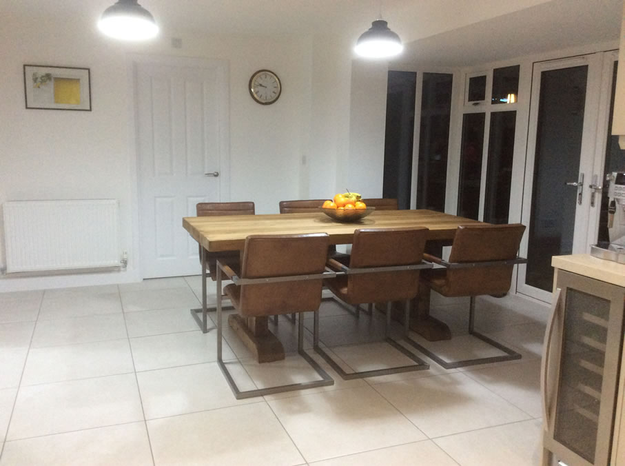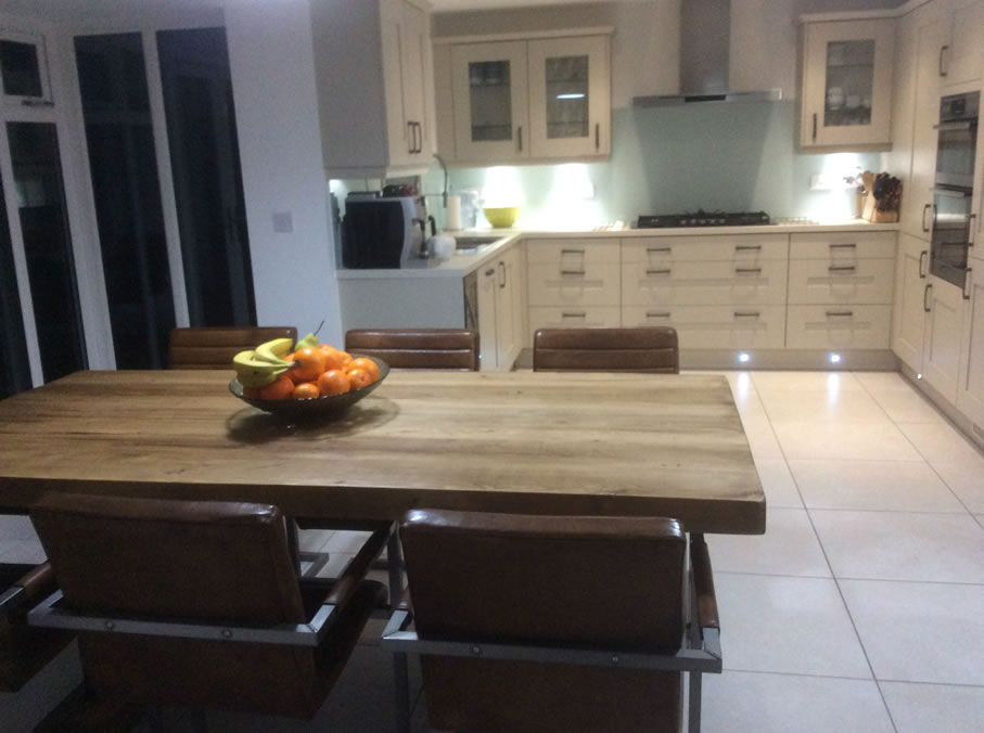 First, our new table, bought from Oldham but made in Lithuania, needed its legs attaching to the top. I took a brief stab at it and immediately realised that I needed an expert. The expert arrived, sorted the table out in under 10 mins., put an additional kitchen cabinet on the wall complete with cornice and pelmet, put a shelf on the wall to hold the Sky Box for the kitchen television and agreed to come back next week to do some more work and left for his journey home.