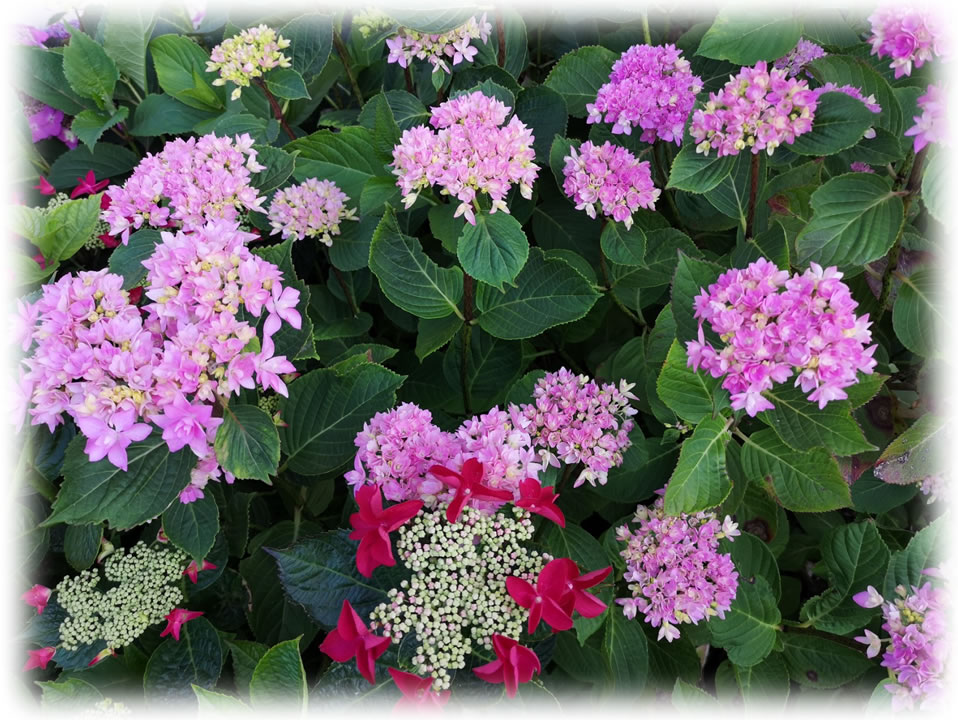 In the front garden, the hydrangeas are beginning to come into bloom. We grew these in Yorkshire but the Sussex climate is something different all together. So many shrubs that just survived in Yorkshire absolutely thrive in Sussex. However, having spent a large part of our married life taking gardening very seriously with quite large gardens, it is nice now to just keep our environment neat and attractive without spending huge sums of money and doing major landscaping.