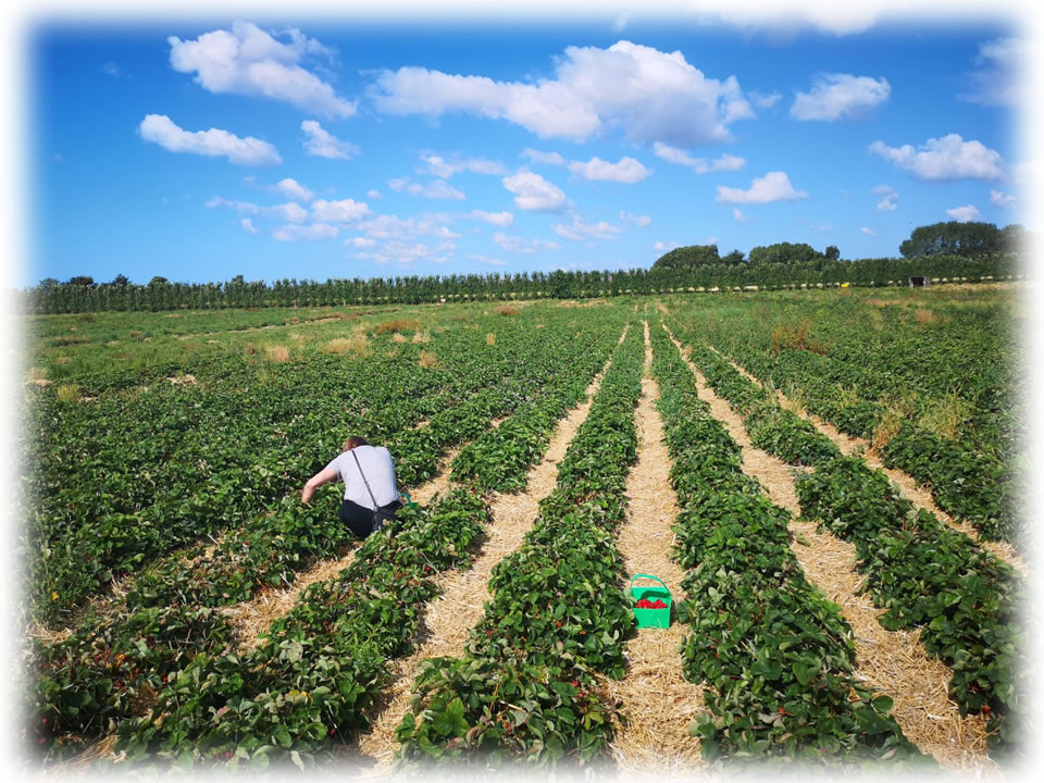 In 60 mins, we picked 5kgs of black currants and 5 kgs of strawberries. Pauline will make jam later today.