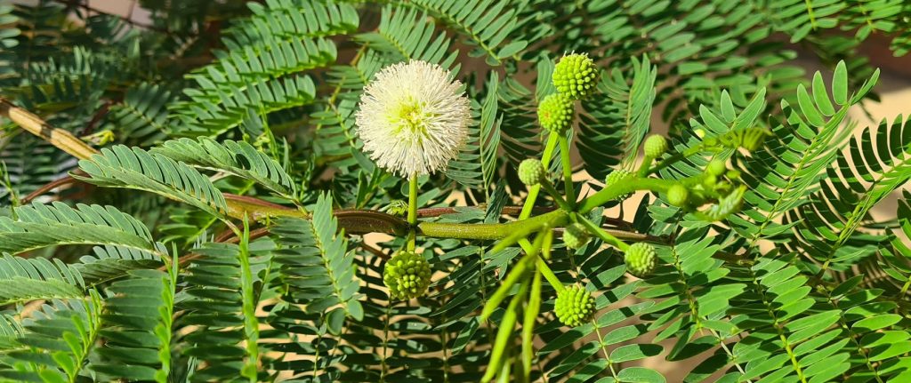 This week it started flowering. For something which could grow into a 40ft/12mtrs tree with red flowers, I’m not sure how these beautiful, white pompoms fit in. I was going to let it die this Winter but it has become a real friend and I can’t be so cruel. It will get one more Winter in the conservatory window