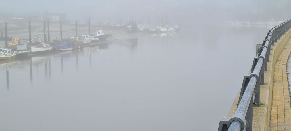 We didn’t walk for long. We had no one to meet. A quick breeze around the Marina Walk and then back home for coffee. Like magic, almost as we sat down at home the mist lifted, the sky turned the most perfect blue and the sun shone strongly.