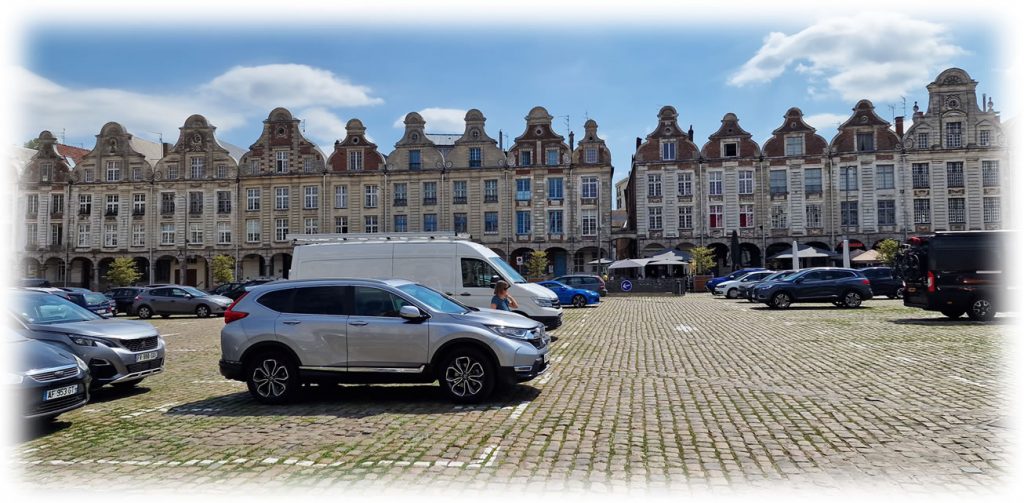 We parked up in the Place des Héros, Arras about an hour’s journey across beautiful, open country on an empty motorway.