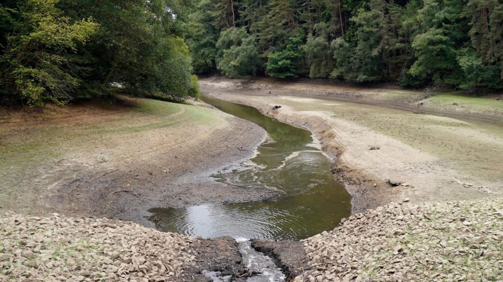 Unfortunately, we have hardly seen any rain for two months and local reservoirs are almost dry. This one, a few miles away has almost given up being a reservoir at all.