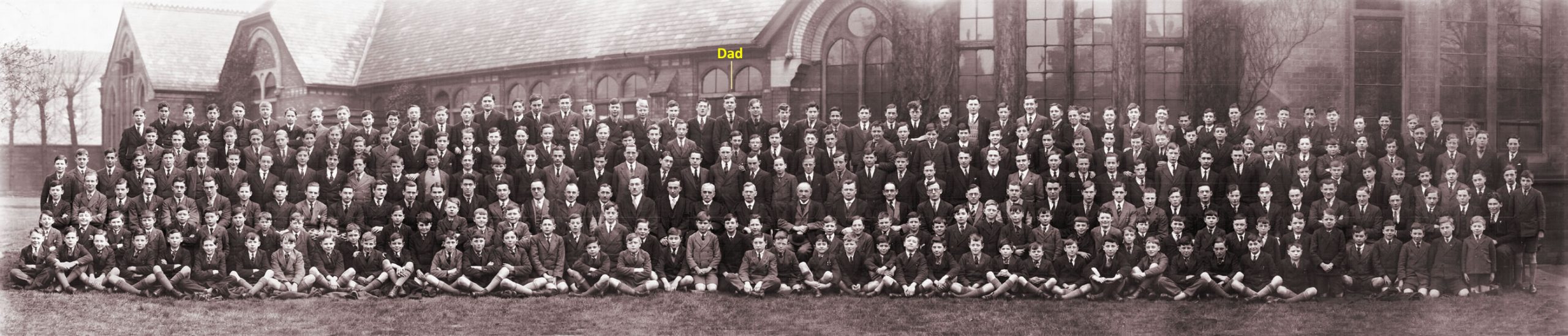 Time is a strange thing, isn’t it, Dear Reader. While I was looking for a school photo of my ancient relative, David Pritchard, I stumbled across this photo from 1930. The central figure at the back leapt out at me. It is my Dad – Eric Richard Sanders 1915 – 1965. – when he was aged 16 and in his final year at Grammar School. It took my breath away. (Click on the photo to enlarge it.) Look how ‘correctly’ he stands, upright and determined to be his best. Sloppy, old man that I am, I almost shed a tear. It reminded me of me.