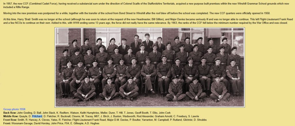 I went to Burton on Trent Grammar School which was founded in the 16th Century. I followed my Father who was there in the 1920s – 30s and my cousin, David Pritchard, who had just left as I arrived in 1962. A number of the teachers mentioned there still remembered Dad – Frank Tusky Read and Major Dai Taffy Davies. They both taught me as well although I definitely didn’t join the cadets.