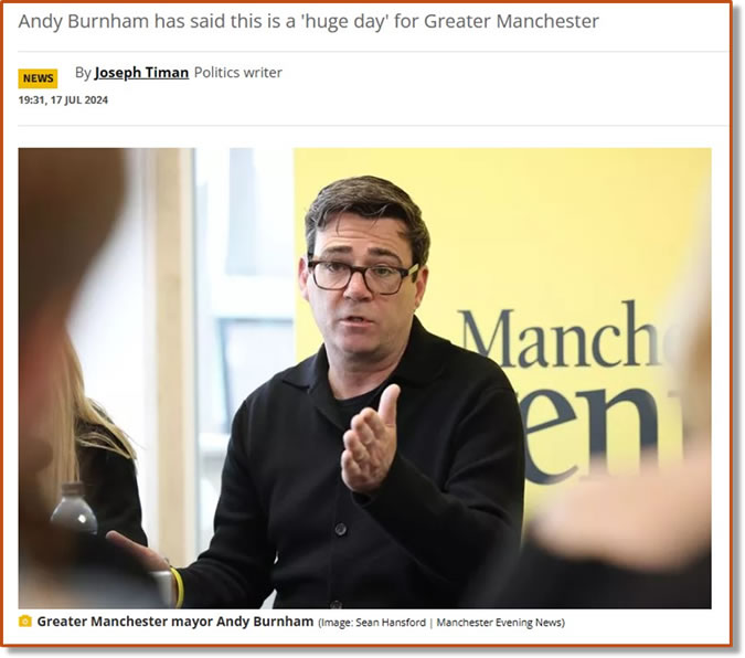 Lovely to see the enthusiasm of Andy Burnham in interview yesterday as he reacted to the Labour Legislative programme set out in the King’s Speech which included devolution of additional powers and responsibilities to Mayors and local areas. Of course, one of these responsibilities will be to push the house building programmed ahead. More than 10,000 new homes a year every year for the next 5 years under the Places for Everyone plan plus vastly improved transport links including extension of the tram service.