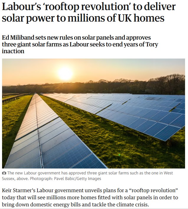 We have gone over the possibilities and economic viability of installing solar panels on our roof but, although we get enough sun to justify it, the cost of installation makes the economics barely worth it. If a Labour government want to persuade us with big grants, that would be enough to tip the balance. They are also installing fields full of solar panels across the country which will be enough to generate 65% of our solar energy for the whole country. The Tories had refused to sign off on these plans for fear of upsetting Tory, Shire voters but still blamed reliance on Russian oil for the rise in costs. This is a workaround the works all round.