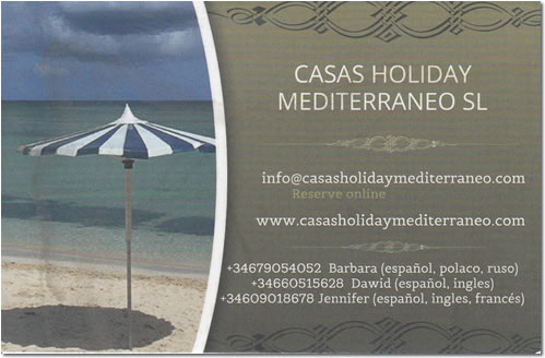The lovely property we rented and which made the whole experience so enjoyable is actually managed by a company called Casas Holiday Mediterraneo SL. I have no particular allegiance to any of them other than ones which help me. I will consider directly contacting Jennifer – the girl from the Management Company – to see if she can offer me a further discount on the Booking.com one. I made sure I got her card before leaving and I will be using it as we plan our return.