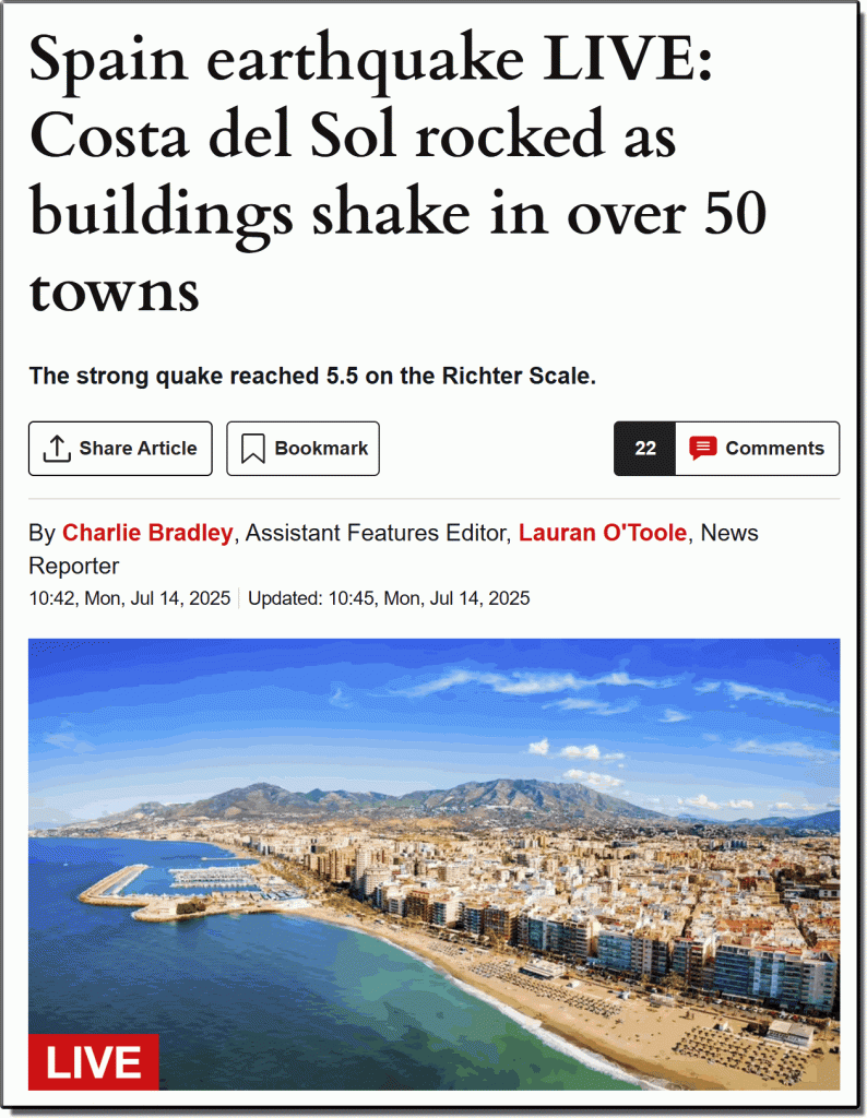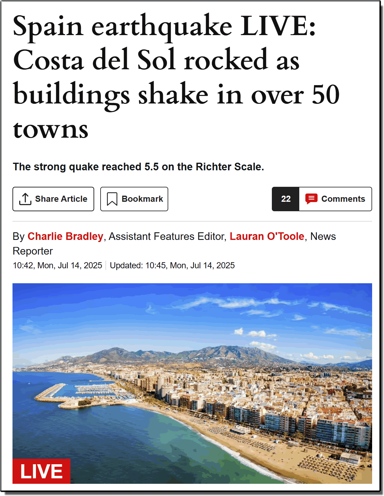Shower, swim, jacuzzi, shower, coffee & croissants and newspapers. Immediately, I was confronted by this news. Yesterday it was floods in central Spain and today it is quite a serious earthquake about 150 miles away from us. And still life goes on serenely here.