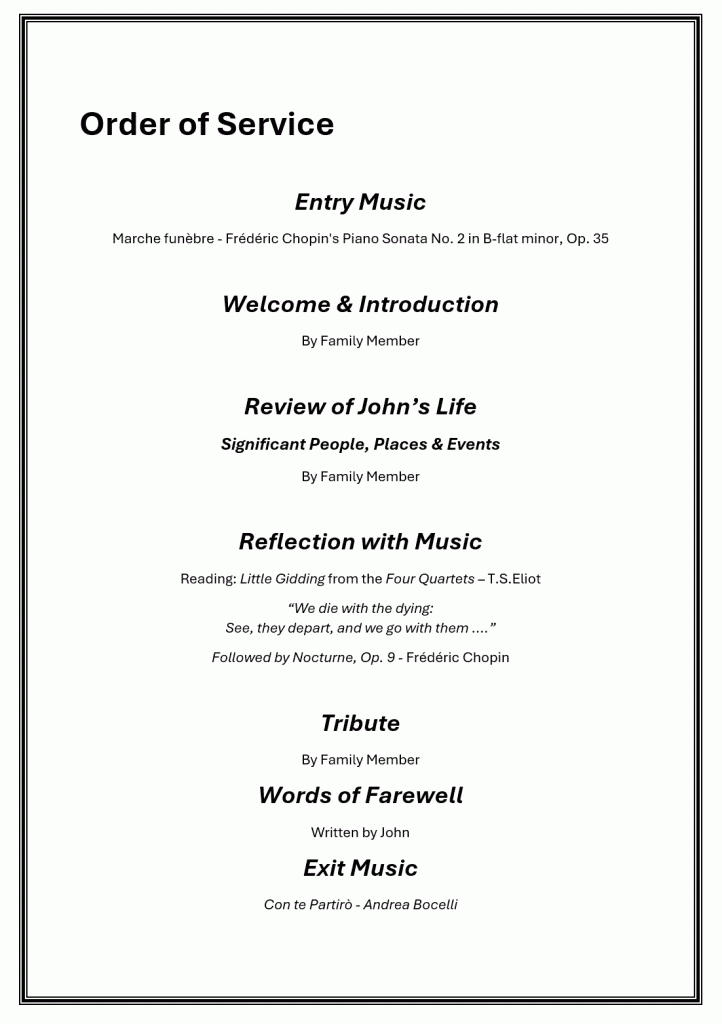What did I do on my holiday? I planned for my funeral. My Carer, who knows I haven’t got much longer, has told me I must seriously consider planning my funeral arrangements. Burial or Cremation? As a Historian, I have always thought a burial with headstone was important. But that was in times of limited dislocation of families. There is a private graveyard in Repton where members of my family are buried. I could be buried there but why? I don’t want people worrying about visiting a geographical spot, maintaining a piece of marble, feeling responsible. I am an atheist. I don’t want to be laid in consecrated ground.