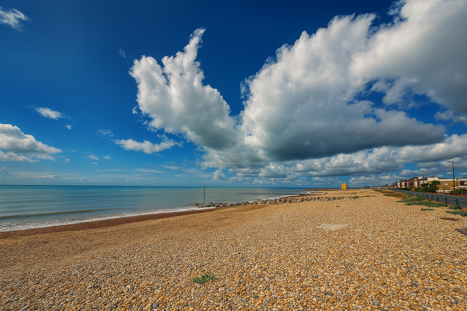 Always like to drive past the beach when I’m out and it was looking lovely, lonely and colourful this morning. At 10.30 am, it was sunny, 22C/70F, with fleecy white clouds decorating the blue sky. The smell of the sea was delicious.
