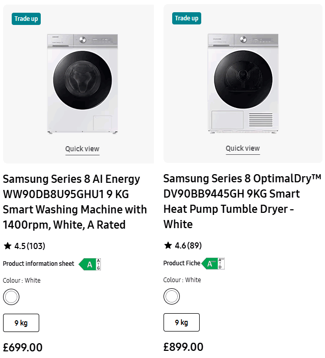 The Dryer was traded in with Samsung but the washer has been junked. It is standing by the garage in the garden to be collected by the Local Authority next week. Good service and quite quick response. It is pleasing to find that is available. I took the old ice cream maker to the Recycle Centre myself and said Goodbye to it.