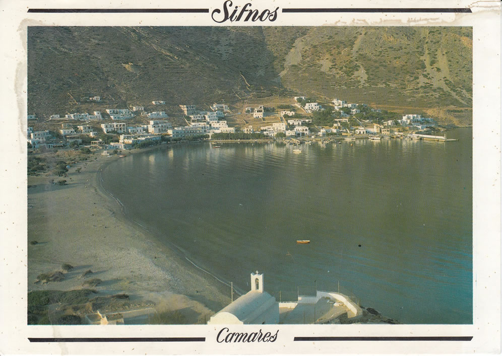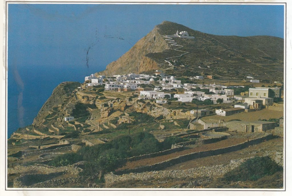 We first arrived in Greece in 1981 and in Sifnos in 1982. The last card I posted from there was in 1999. A lot changed in that time. Arriving as a naive, young man trying to learn the language to a buying a farmer’s field and employing an architect to design our house. The island was growing, almost imperceptibly, around us and with us.