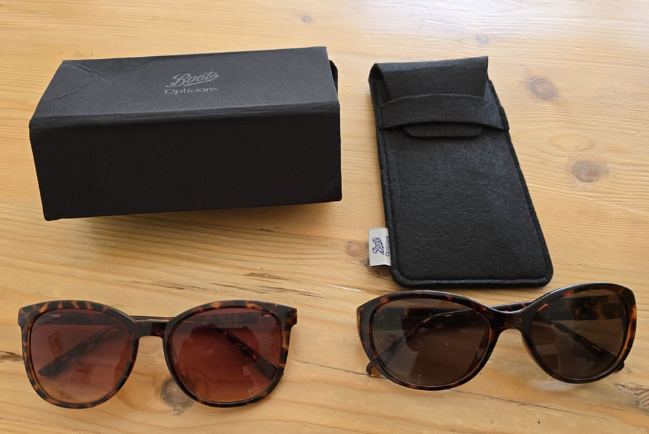 At least it’s sunny here today and, joy of joys, my Travelling Companion has found sunglasses that ‘slightly’ please her at Boot Opticians. Well, they were satsfactory enough to have two pairs for different occasions.