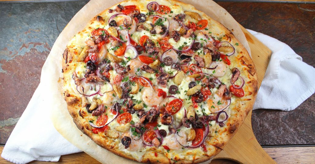 It’s lovely to cook outside and this oven was bought to be used in the garden. You never know how good things are until you use them. Believe me, this oven is brilliant just as Chef’s pizza dough is unbelievably tasty. If you usually buy pizza, magnify the flavour by the power of 10 and imagine the quality – one Vegetarian and one Seafood – Even I was converted, Dear Reader.