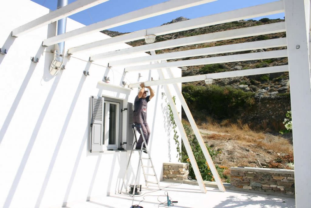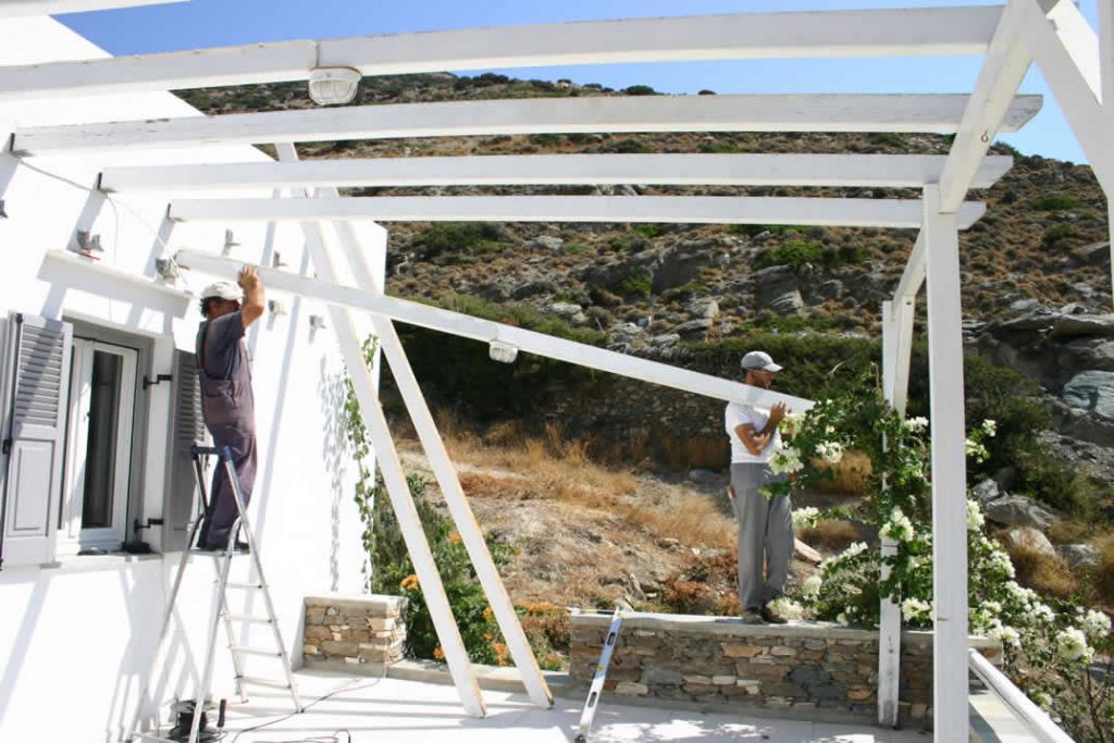 After a couple of days and less than five days before we left, he told us that we must get it waterproofed against the winter rains by having a rubber solution installed on top. That was something he didn’t do. He suggested a friend who would do it at a price and we were left to organise it. Our new pergola also needed painting. Fortunately, the rubberisation was done and I had a resident painter to do the rest. It all got done at the last minute just as Greeks like it but a ‘planner’ like me was developing an ulcer with anxiety.