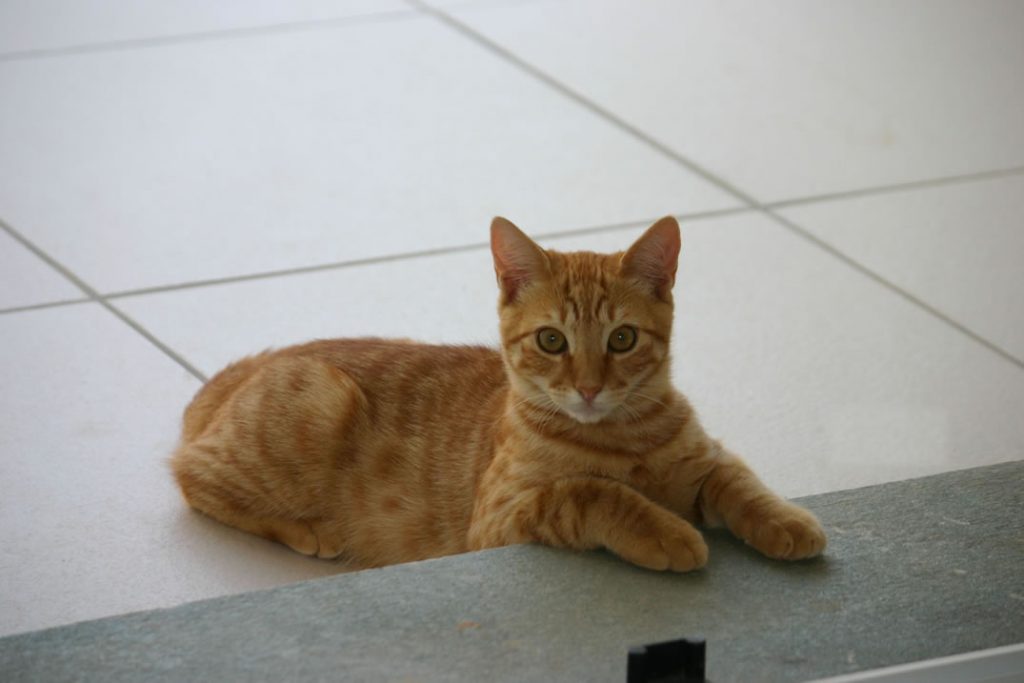 The other thing we were anxious about was the fact that we were leaving, driving home and not returning for 6 months. We had to appoint a caretaker to look after things. For a long period, our friend, Stavros, did that but, eventually, I had to pay people to take over. The other concern was the three ferral cats which had adopted us. They had to be left to cope in the Winter months. Little Ginge is just about 10 months old here with gorgeous, big eyes sent by the others to beg for food. They knew how to seduce me. She is almost certainly dead now, 14 years on.