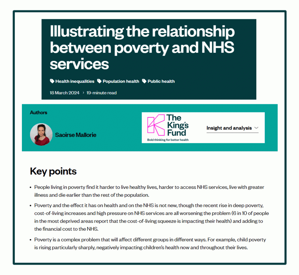 Of course, not only is that sort of treatment really reassuring but it is fairly comprehensive. As this report from The King’s Fund makes clear, poorer areas have less access to healthcare due to a whole series of factors like: