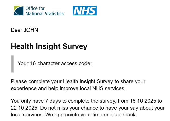 Each month I complete an ONS NHS Survey which attempts to chart the nation’s developing views of the service. It takes a few minutes and is the least I can do. Other people in my area give up lots of their time freely to help out at the local surgery. Yesterday, when I walked down to receive my annual vaccinations, there were people organising the car park, organising the checking in, the preparation for the doctor and showing people out afterwards. Must have been 15 volunteers involved. Puts to shame some of the highly paid lunatics at the top who struggle to spell and punctuate.