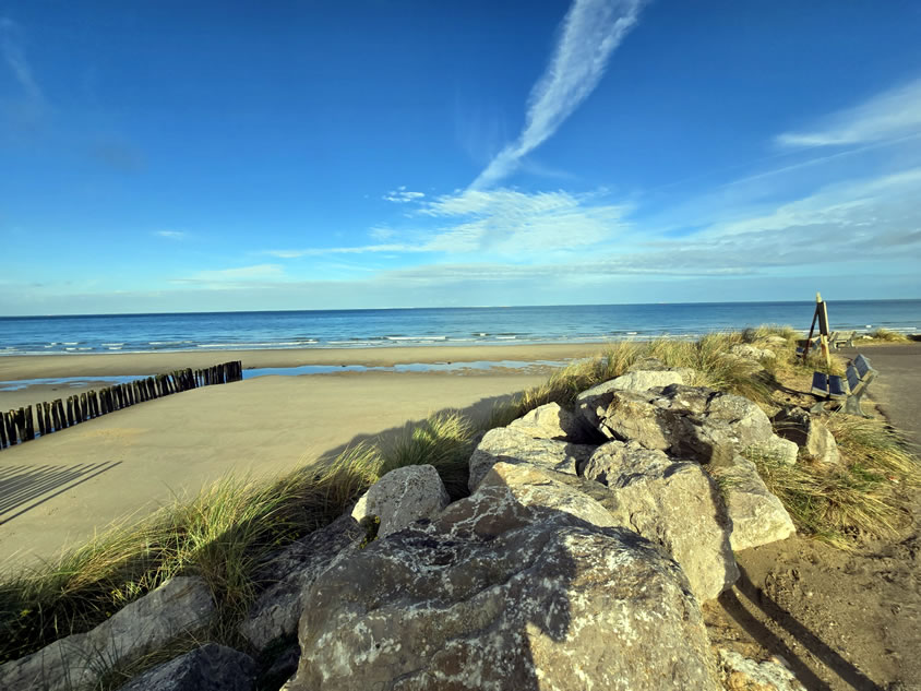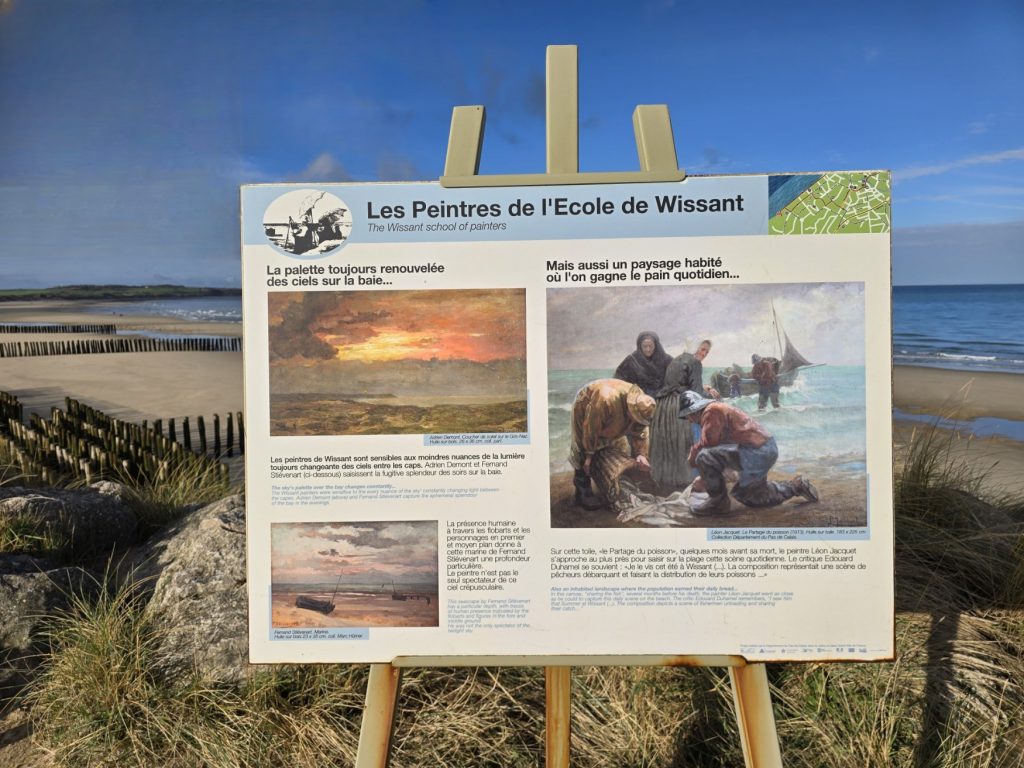 Wissant Beach Front is lovely on this gorgeously sunny and warm morning. Shorts and tee shirt in France in late October is great. We walked down to the Wissant School of Painters.