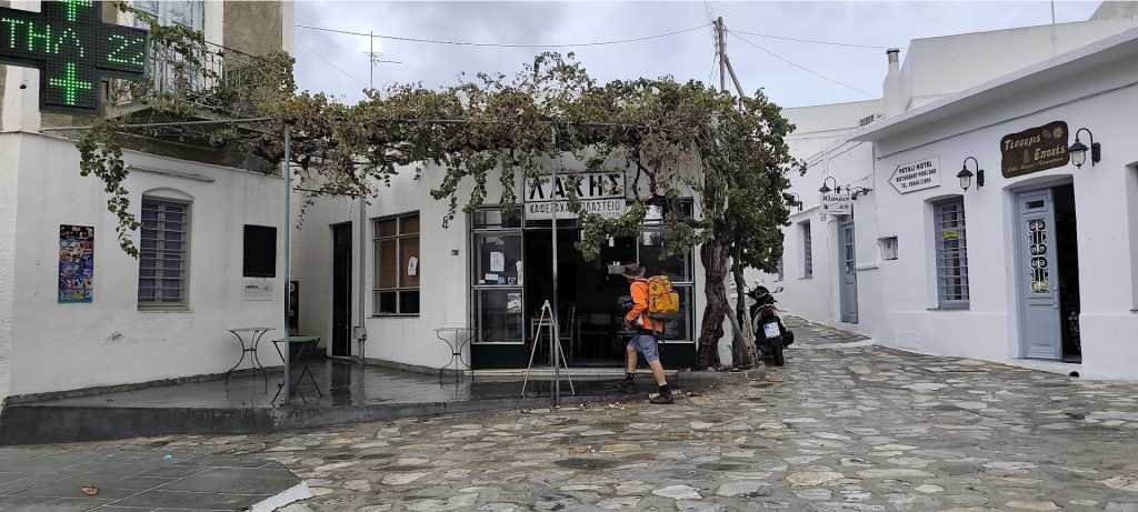 The beach is empty in Greece now. The island is largely bereft of tourists who generally look for sun and warmth although a few hardy walkers remain. The funny thing is that, although there a rainy days, generally the temperature is respectably mild. The Greeks, though, treat it like mid winter and dress accordingly.