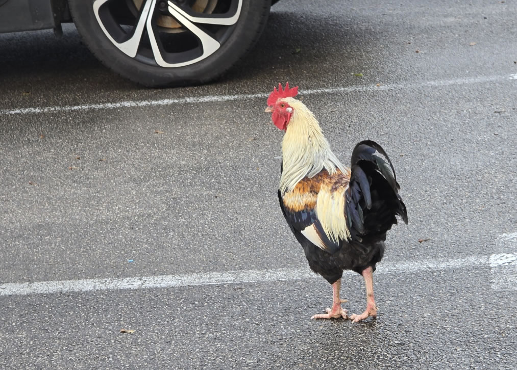 Travelling back through the tunnel under the sea – a weather free environment – this afternoon. The most gorgeous cockerel was roaming the hotel carpark. Unfortunately, I wasn’t up to catching and plucking it but a younger, hungrier man ….