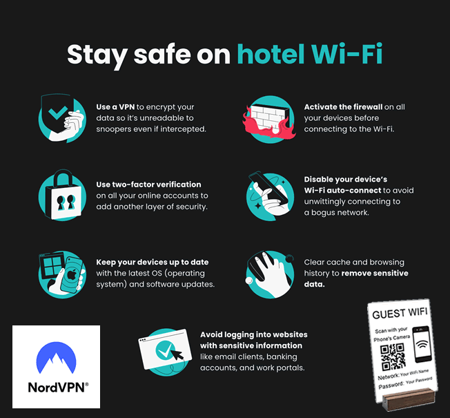Hotel Wi-Fi is notoriously dangerous. We all take it for granted these days but it was an additional cost only a short while ago. Then it became a privilege of regular customers and now is ubiquitous. It has always been dangerous. All internet access outside the confines of our home router involves danger. It isn’t too difficult to access users’ data – their emails, banking, passwords, etc., on an open wifi feed. That’s why I use VPN.