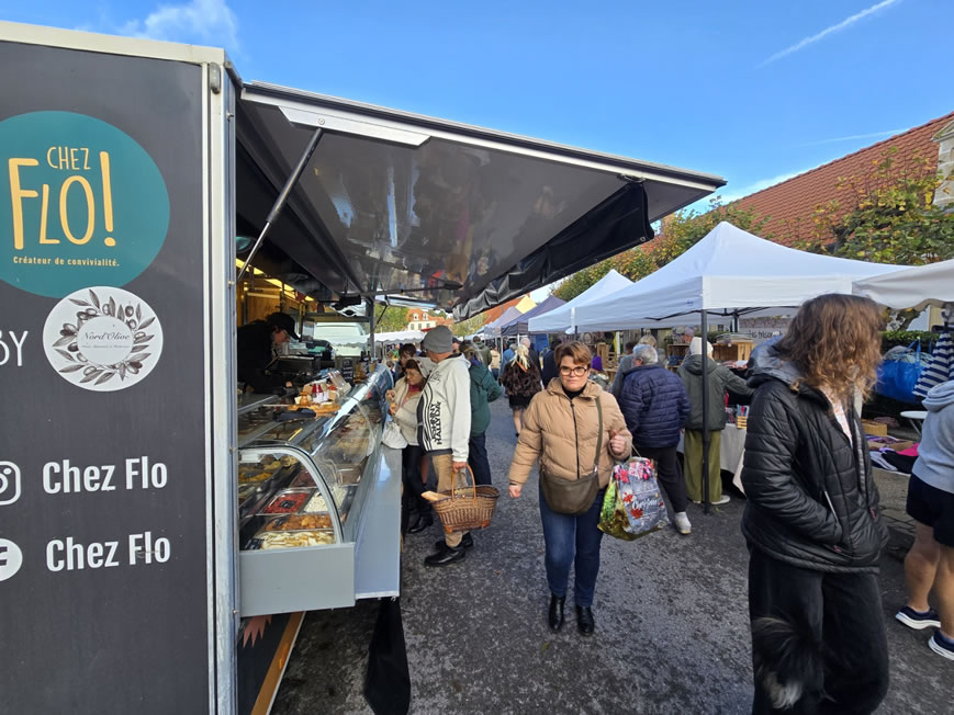 It is Half Term here and lots of French kids are here with their Mums to run on the sands. It is also Market Day and there is an incredibly busy crowd of shoppers thronging the stalls.