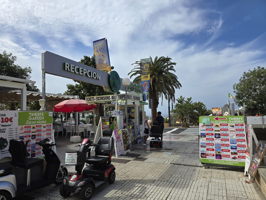 An emergency ambulance met the plane on landing and we were all held for ten minutes while the patient was removed. Why he couldn’t have been stuck in a body bag and barrowed off, I don’t know. Anyway, Tenerife Sur Airport was quiet, comfortable and welcoming. We stopped for Baguette and a coffee before seeking a taxi and contacting our property manager.
