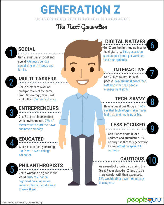 According to this, there are two things about Gen Z that really chime with me from the chart above. They both come from my time teaching. Tech Savvy – Have a question? Google it. I used to sell the internet to kids in the early stages by challenging them to ask me anything I couldn’t find an answer to within a minute. I never lost and they have grown up believing that the digital world means anything is possible. The other thing is attention span. I have a concentration endurance span that is so long, I can cut off the blood supply to my legs sitting working. According to this their attention span is just 8 seconds. We pandered to that in schools with multi-part lessons to keep them interested instead of pushing them to persevere. I always argued that we were doing them a disservice.