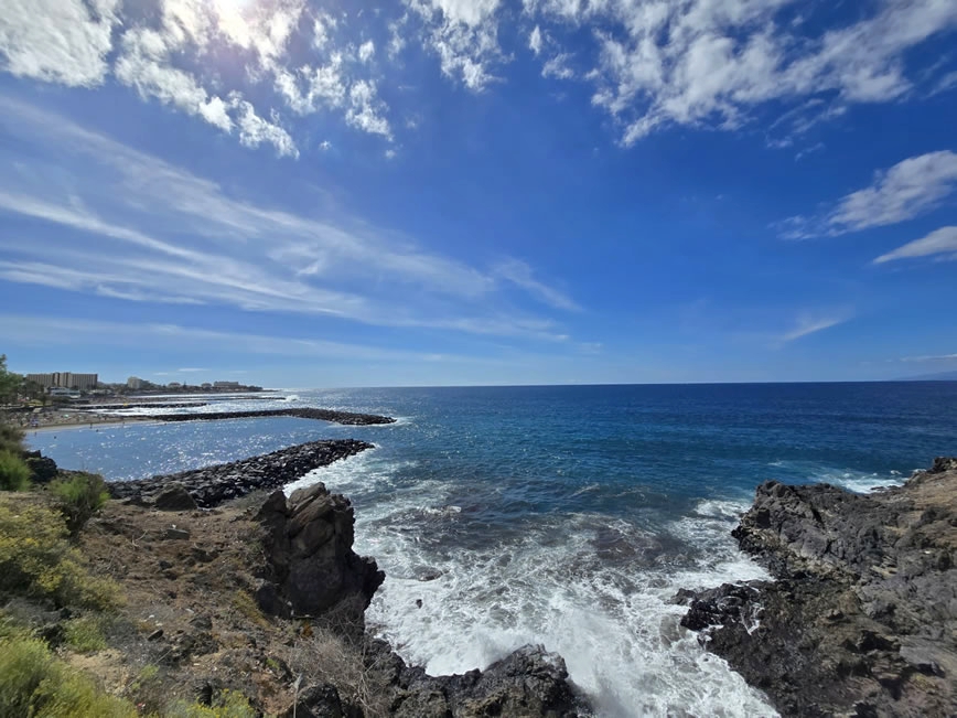 Still, no wine until two, long walks and a swim have been completed so that is the discipline for the day. Actually, walking here is delightful. It is cold this morning back home at just 5C/41F. I think I would be pushing it to go out in shorts and tee shirt today. Snow in the North is unlikely to be seen on the South Coast but neither would we be seeing temperatures of 25C/77F which prevail in Tenerife.