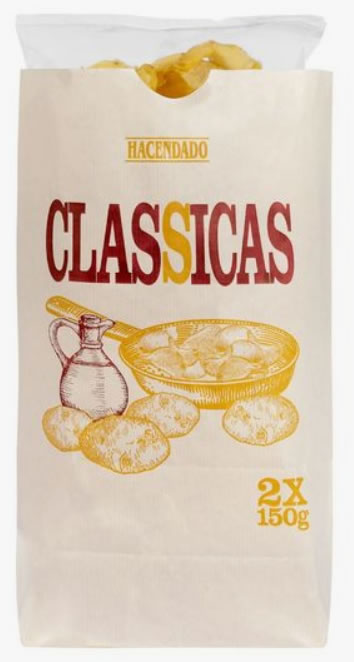 Not only are these crisps from Mercadona just their own brand but very cheap. They are fried in Olive Oil which impresses my Cook but I can’t find the potato type. Still, even I enjoyed a few.