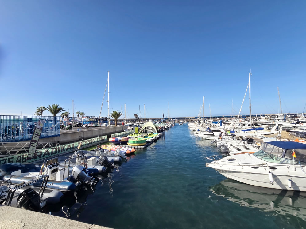 Walking today in the hot sunshine has been down and around the busy Marina where Sunday crowds are queueing to get on excursions to watch Dolphins, to go fishing or deep sea diving. Most just want to chug across the water to the always visible island of La Gomera. I will not be joining them.