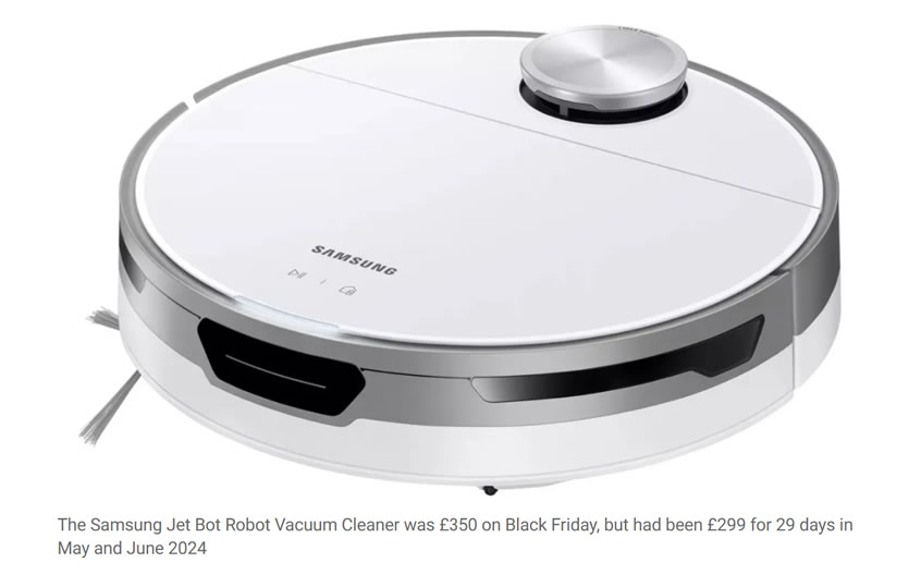 They feature this robot vacuum cleaner. We have two of exactly this model – one upstairs and one downstairs. It is £50.00 more in the sale than it was prior to it. This is the Farage of consumerism. Do not believe what you are being sold.