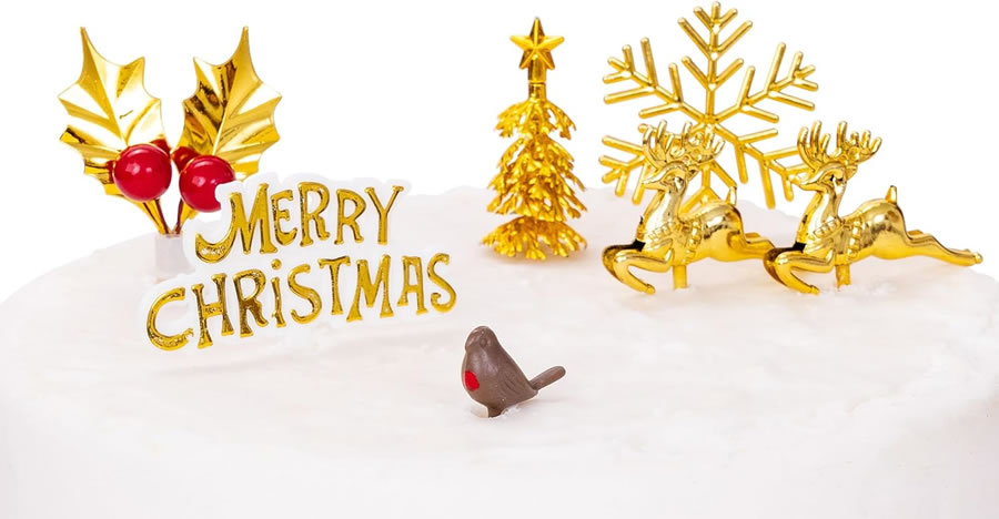 My Chef has made three Christmas Cakes – not because we will eat three but just because she can. Two will be given to other people while the third will sit in a cake tin in our house while we diet. Today, marzipan, icing and cake decorations will be bought and her delights will start. This year the theme will be golden and I’ve just had to order these decorations from Amazon. Bah Humbug!