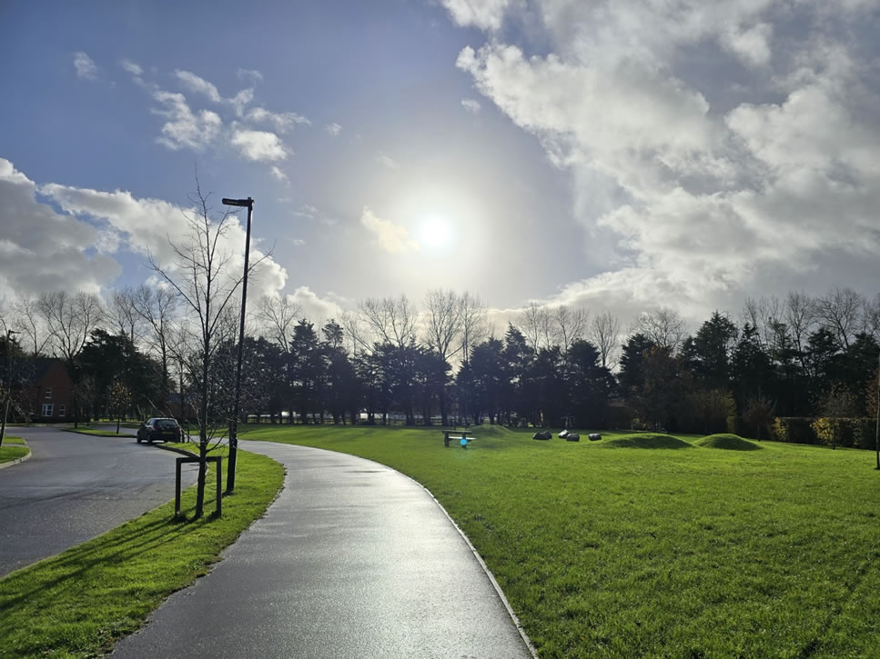 One of the benefits of going away is seeing one’s own home through fresh eyes. It is so easy to take for granted the places and people and objects around one as familiarity dulls the senses. Out walking today, the area around my house was vivid and fresh, beautiful and vibrant. The grass is absolutely gorgeous – almost good eough to eat.