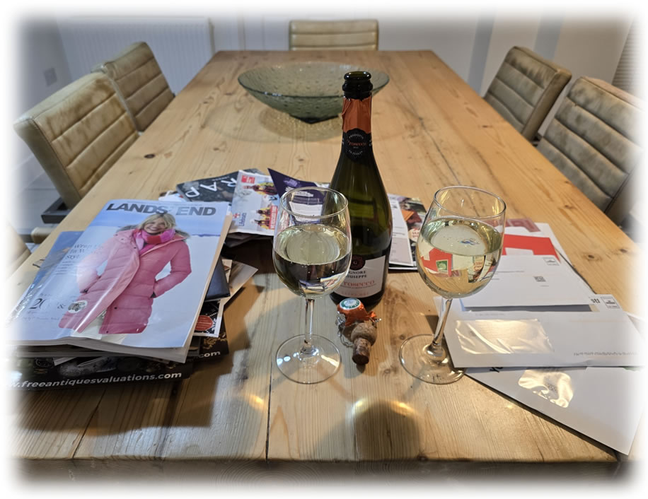 It was dark and just 3C/37F as we drove home. We had bought pizzas and fresh milk in the M&S at the airport for Supper. I opened a bottle of Prosecco to accompany the lump of post which had appeared behind the door. I had put the heating on as we left Tenerife and the house felt warm and welcoming as we walked in.