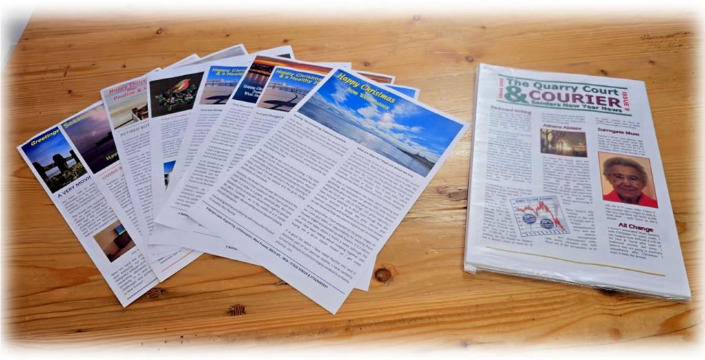 Back home, it is my job to do the paperwork – to turn my mind to Xmas Newsletter and Card List. We still can’t allow the post to go. All year, I am texting, emailing, Whatsapping, Tweeting, Blogging, etc but Xmas cards and newsletter are a tradition that I can’t quite let go of. We used to send around 70 cards each year. I think we will be down to around 50 this year. Death is very final, Dear Reader and age has meant some people not keeping up with the digital world. If you can believe it, a few people don’t read the Blog. So, I produce a newsletter and have done since at least 1997. I have copies going back that far and I wrote informal ones to individuals before that. I get lots of newsletters back and enjoy reading them.