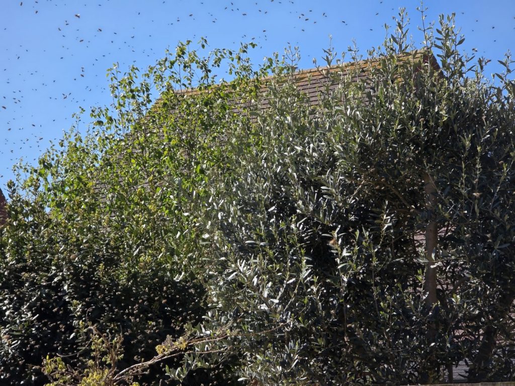 I won’t be in the garden for a while. Just been alerted to a loud noise and discovered a wasp’s nest swarming across my neighbour’s garden around an olive tree. It is the hottest day so far and has already reached 24C/75F in the back garden. By contrast, Athens is just 16C/61F. Bet they haven’t got wasps.